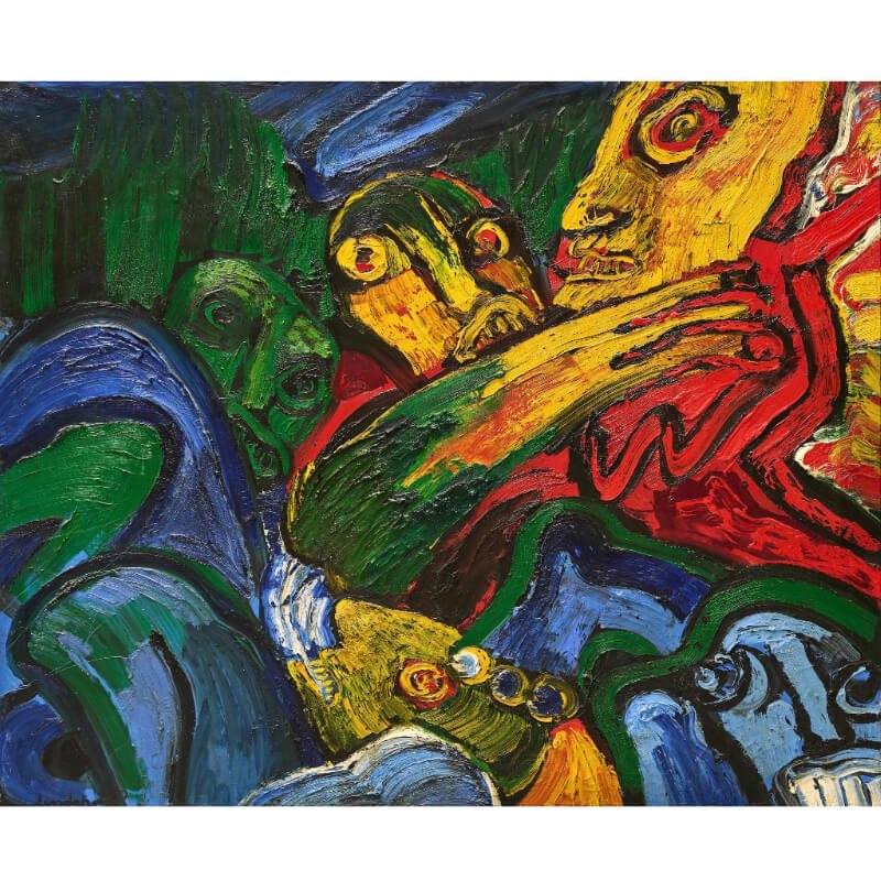 À la fin des années 1940, il gagne Paris, attiré par le souffle de la modernité. Il y rencontre Asger Jorn, Karel Appel, Corneille, Pierre Alechinsky et les artistes du groupe CoBrA, dont il partage la révolte, l’énergie instinctive et la jubilation du geste. Avec eux, il affirme une peinture libre, viscérale, où la matière se fait chair et la couleur, cri.