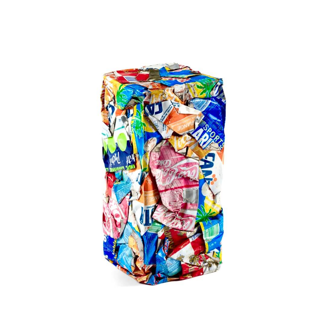 Sculpture de canettes en aluminium compressées
